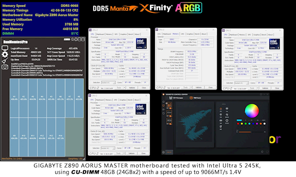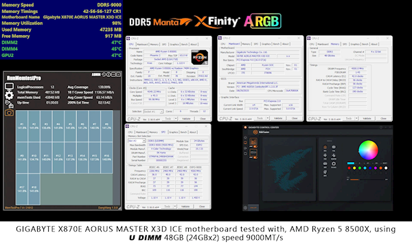 全何称,该技术是与技嘉联合研发的,在技嘉Z890 AORUS MASTER、X870 AORUS MASTER X3D ICE上经过了优化,可以顺利跑到9000MT/s。